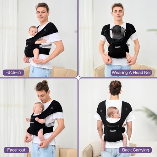 ROBIBERS Baby Carrier Newborn to Toddler - Wrap Baby Carrier for 7-50 lbs, M-Shaped Sitting Posture, Toddler Carrier with Soft Fabrics for Front and Back Carrying, Black