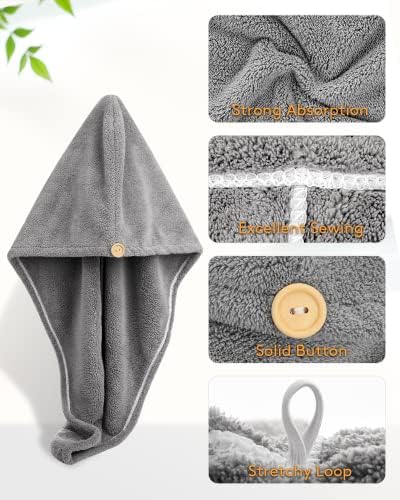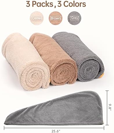 YFONG 3 Pack Hair Drying Towels, Hair Towel with Button, Super Absorbent Microfiber Hair Towel for Curly Hair, Fast Drying Hair Wraps for Women Girls, Microfiber Towel for Hair