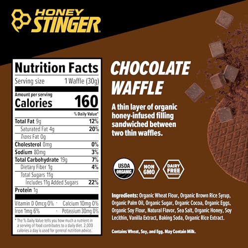 Honey Stinger Organic Chocolate Waffle, Energy Stroopwafel for Exercise, Endurance and Performance, Sports Nutrition for Home & Gym, Pre and Post Workout, Box of 16 Waffles, 16.96 Ounce