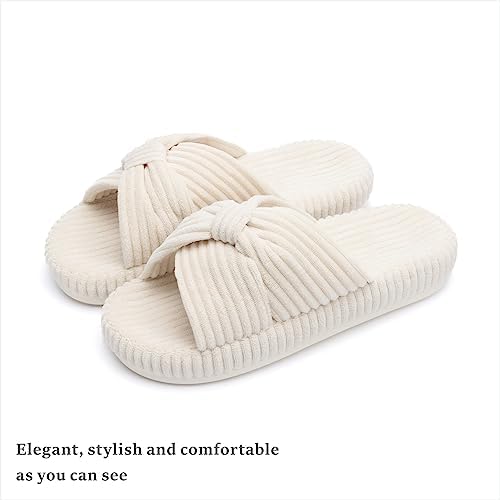 Chantomoo Slippers for Women Memory Foam House Bedroom Corduroy Bow Crossbands Slide Slipper Shoes Comfy Trendy Gift Slippers