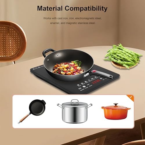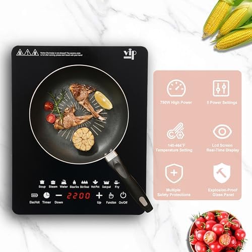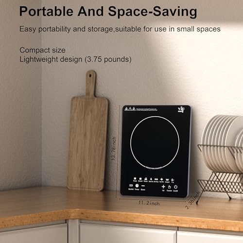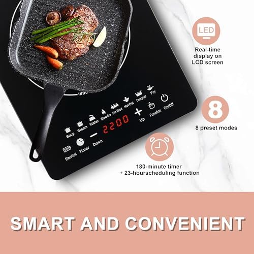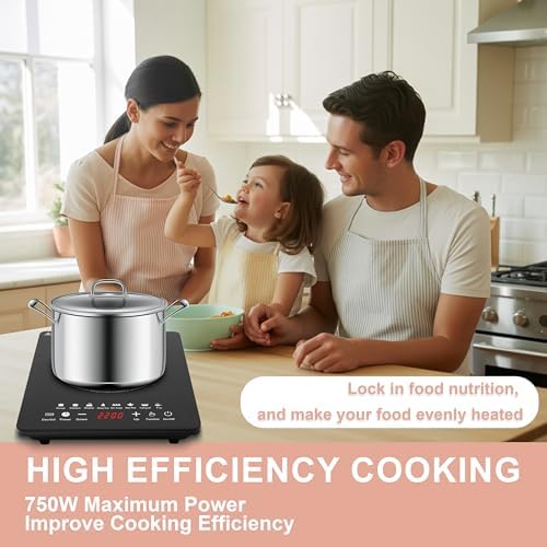 Portable Induction Cooktop Hot Plates, 750W Adjustable Sensor Touch Single Electric Cooktops Countertop Stove with 3-Hour Timer, 8 Cooking Preset Programs, Auto Pot Detection \u0026amp; Safety Lock,