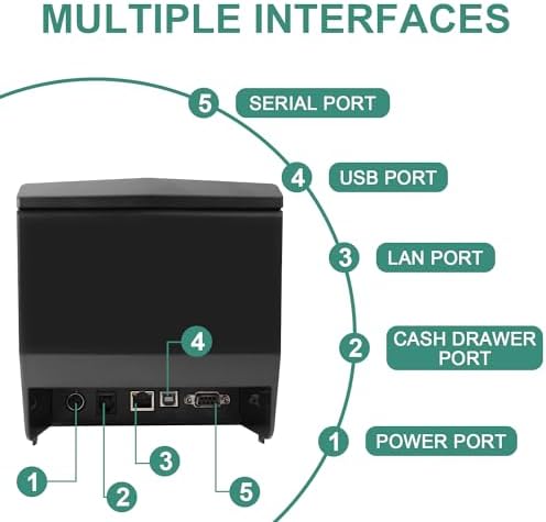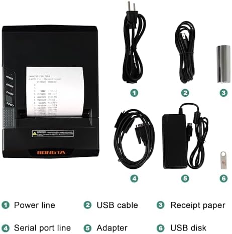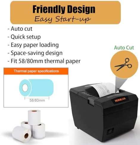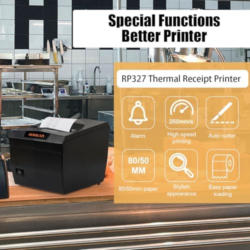 Rongta POS Receipt Printer, 80mm Thermal Printer with USB\/Serial\/Ethernet and Auto Cutter for Kitchen and Retail Use, Cash Drawer Support for Windows\/Mac\/Linux (RP327)