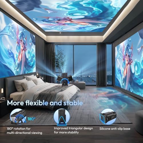 Portable Mini Projector XGODY Gimbal5 - Mini Smart Android 11 HD Projector Supports 1080P 4K WiFi6 BT Home Theater Video Projector with 180° Rotatable Stand Auto Keystone for Android, iOS Matte Black