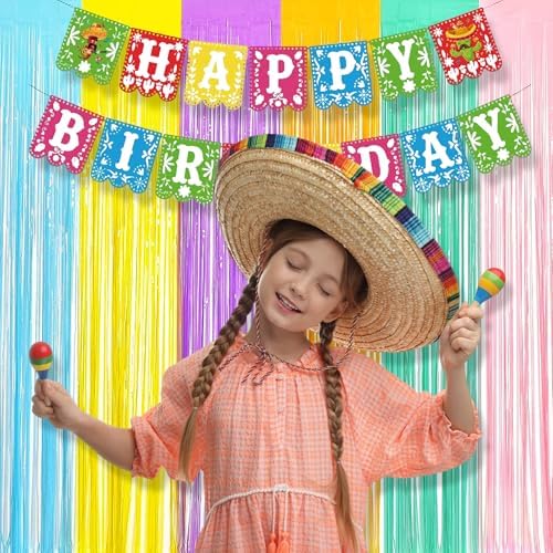 BRAVESHINE Tinsel Foil Fringe Curtains - 2Pcs 3.2x8.2ft Pastel Colourful Photo Backdrop for Sweet Birthdays Easter Bunny Bridal Shower Fairy Kids Candy Donut Party Decorations
