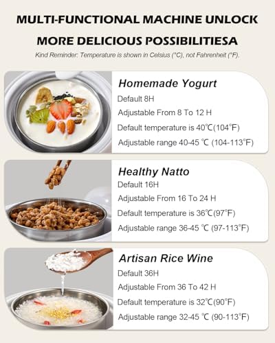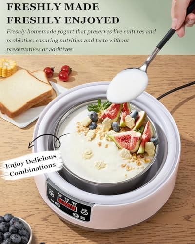 36 Hour Yogurt Maker, Automatic Digital Yoghurt Maker with Constant Temperature Control and Timer, Multifunctional Probiotic Yogurt Machine for Home Cheese, Fruit Wine (With 4 Glass Jars 42 Ozs)