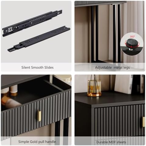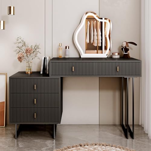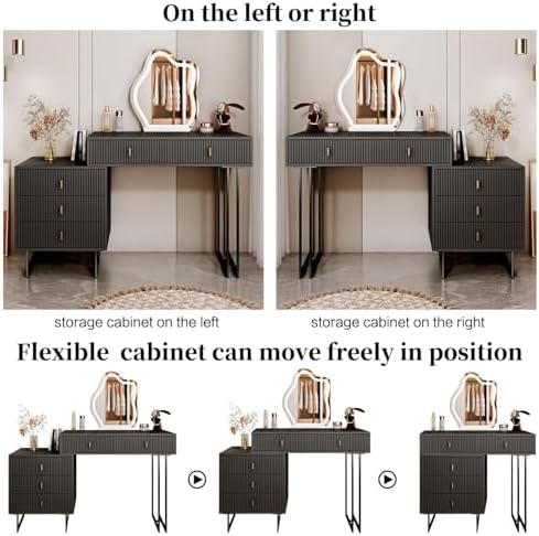 Ieejdn Black Vanity Desk with Mirror and Lights,Small Makeup Vanity with 5 Drawers, Modem Makeup Table with Adjustable Cabinet for Bedroom,Makeup Room