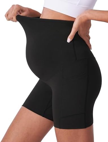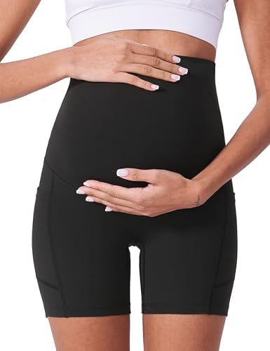 POSHDIVAH Maternity Shorts for Women Over Belly Biker Workout Yoga Active Summer Pregnancy Running Short Leggings 5"