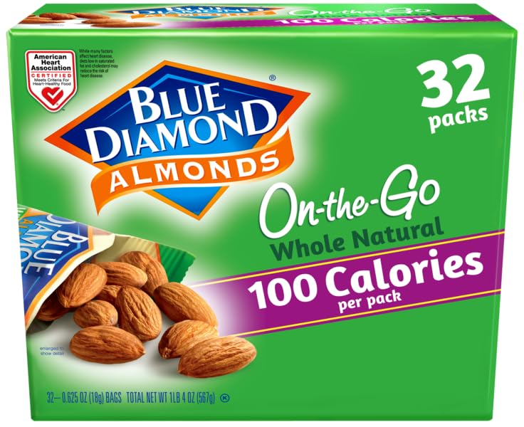 Blue Diamond Almonds Whole Natural Raw Snack Nuts, 100 Calorie Travel Bags, 32 count