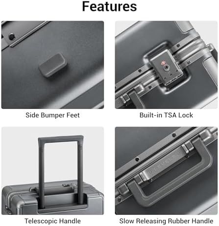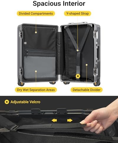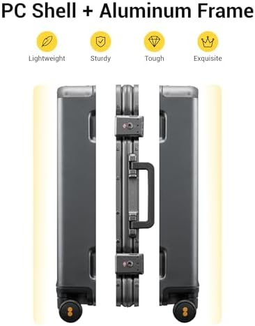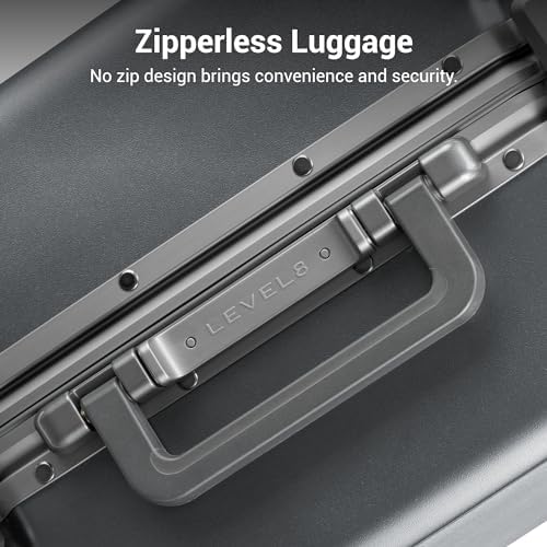 LEVEL8 Zipperless Checked Luggage with Aluminum Frame, Upgraded Medium Hardside Suitcase with Spinner Wheels, Metal Travel Luggage with Double Tsa Locks, 24 Inch, Grey