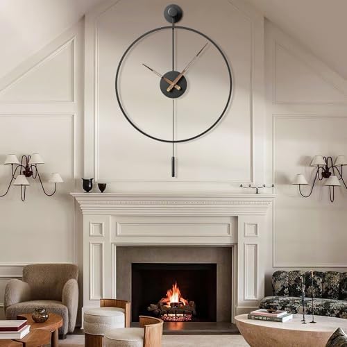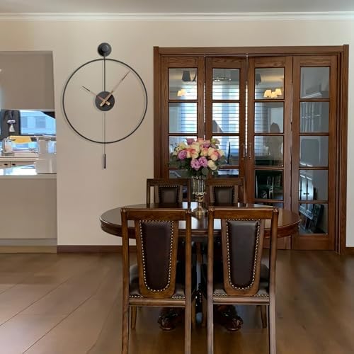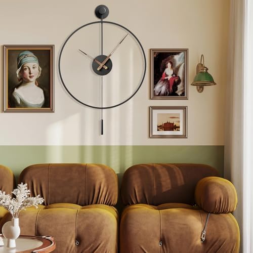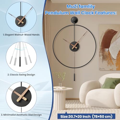 MuZi famlily 30.7×20 Inch Large Modern Decorative Giant Pendulum Wall Clocks,Big Classical Metal Dial Wall Clock with Walnut Pointers for Living Room,Office,Entryway,Dining Room Decor