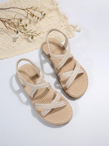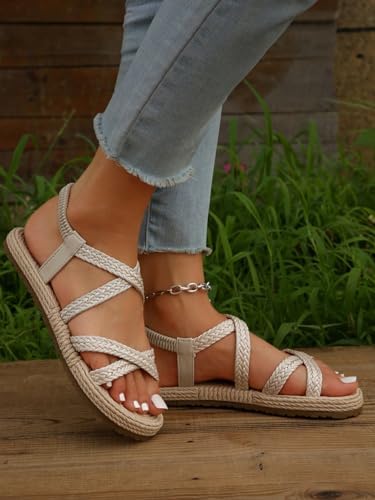Verdusa Women's Casual Cross Woven Sandals Vacation Summer Beach Flat Sandals Shoes