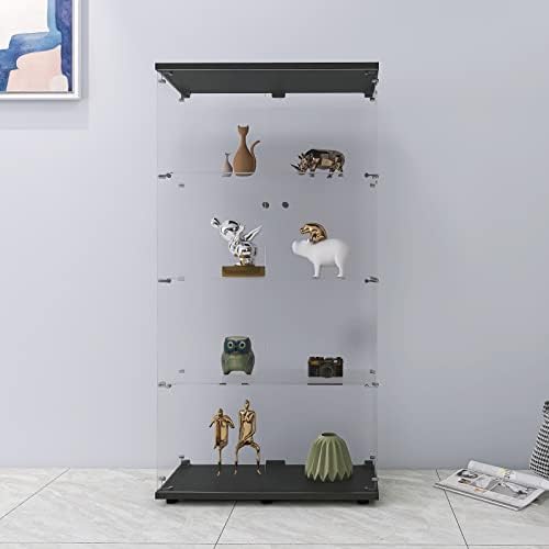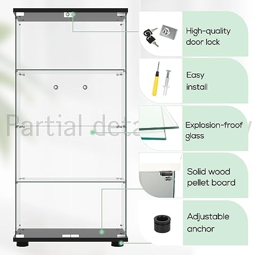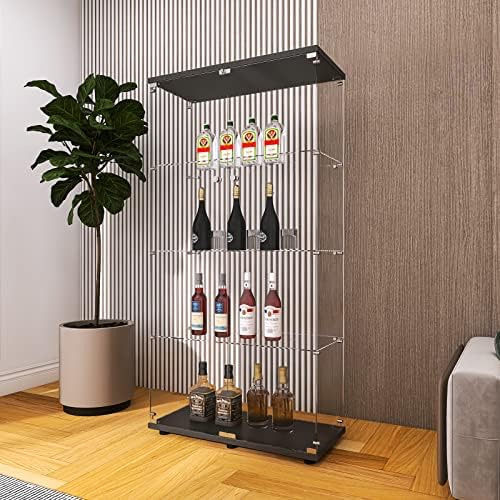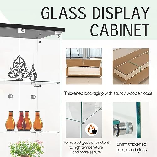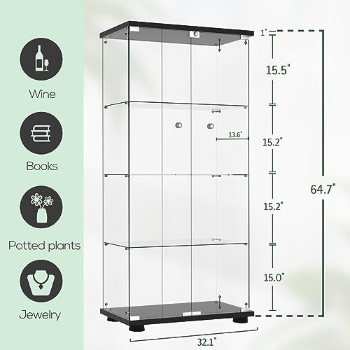 FANYUSHOW Glass Display Cabinet with Double Door and Lock, Quick-Install Style 4-Shelf Curio Cabinet 5mm Tempered Glass Floor Standing Bookshelf for Living Room, Bedroom, 65" H x 32''L x 1
