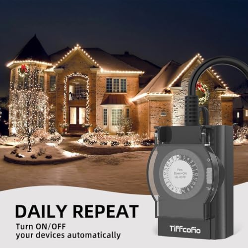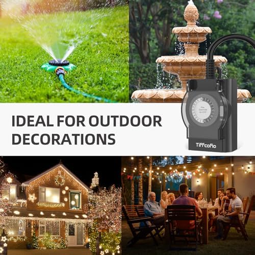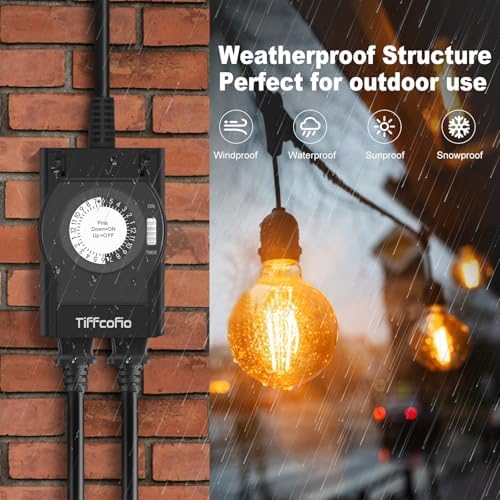 Outdoor Timer Outlet Waterproof, 24 Hour Mechanical Light Timer Outdoor, 2 Grounded Outlets for Home and Garden, 15A 1\/2HP, Heavy Duty, ETL Listed (1 Pack)