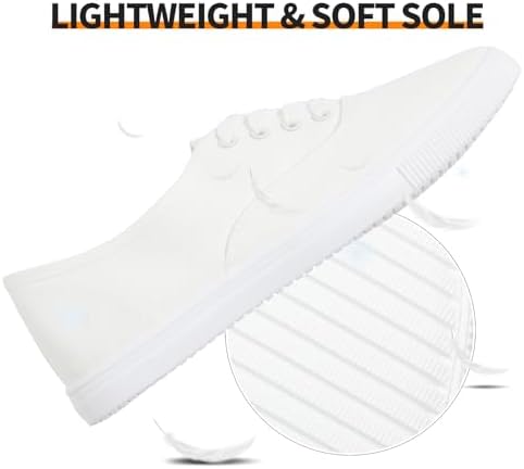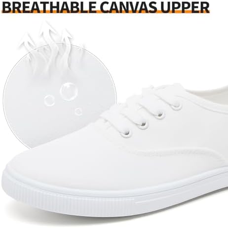 Womens Classic White Sneakers,Low Top White Canvas Shoes,Lightweight Casual Canvas Sneakers