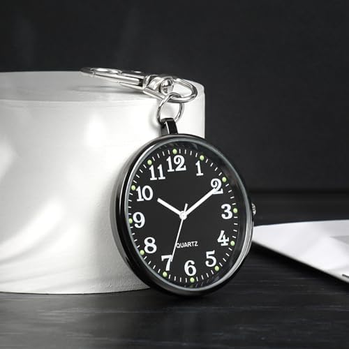 FUNGORGT Minimalist Ultra Thin Open Face Quartz Pocket Watch with Key Buckle Unisex Portable Unisex Pocket Watch