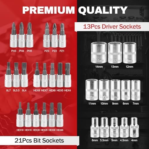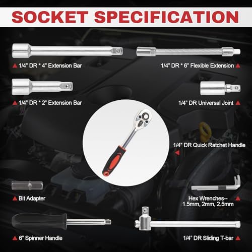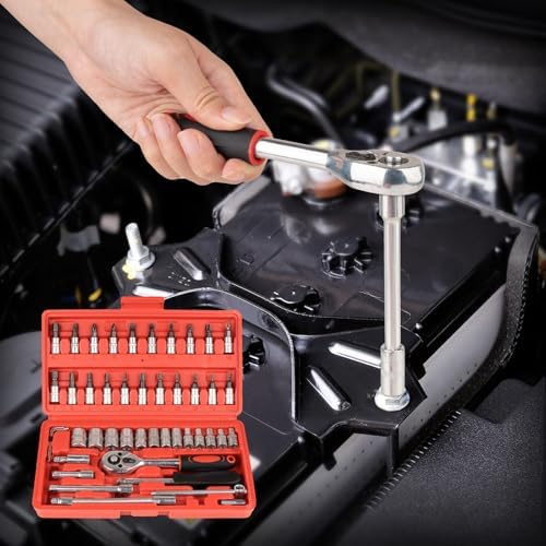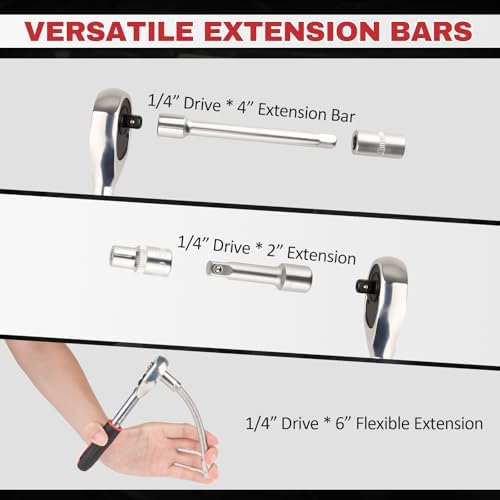 46PCS Small Drive Socket Ratchet Wrench Screwdriver Set, 1\/4 Inch Metric Socket and Ratchet Wrench Set with Extension Bar, Compact Tool Set for Car
