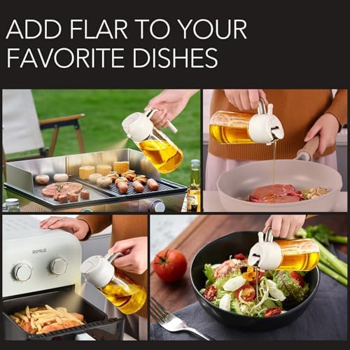 YARRAMATE 16oz\/470ml Glass Olive Oil Sprayer for Cooking with Stickers, 2 in 1 Oil Dispenser for Kitchen Gadgets, Food Grade Premium Spray Bottle for Salad, Frying, BBQ (Creamy White)