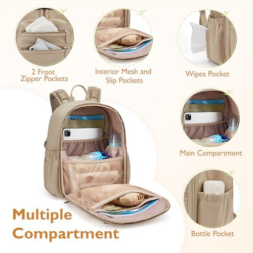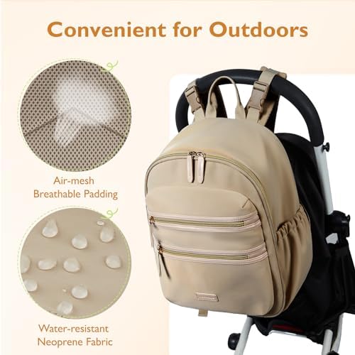 mommore Neoprene Diaper Bag Backpack Small Baby Bag Travel Mini Diaper Backpack for Newborn with Insulated Pockets, Stroller Straps