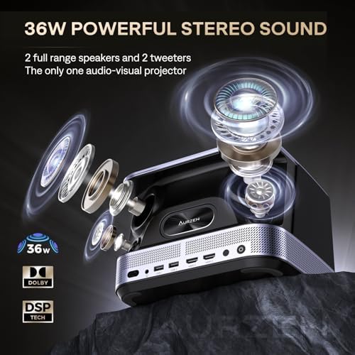 3-in-1 Projector 4K Supported, AURZEN BOOM 3 Smart Projector with WiFi and Bluetooth, 3D DoIby Audio & 36W Speakers, Auto Focus & Keystone, Netflix Official 500 ANSI Home Outdoor proyector, Bl