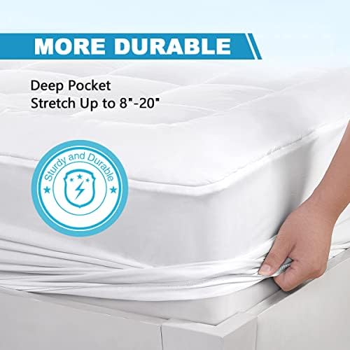 Queen Mattress Pad Cover Cooling Mattress Topper Pillow Top with Down Alternative Fill (8-21\u201D Fitted Deep Pocket Queen Size) White