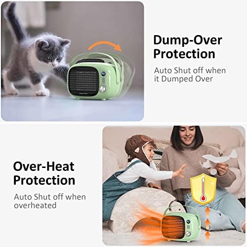 Coolfor Space Heater, Fast Heating Desk Heater with Temperature Control, 800W\/500W Safe and Quiet Ceramic Heating Fan for Home Bedroom Office Desk Indoor Use(Green)