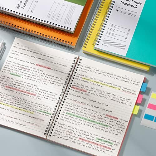 EMSHOI Spiral Notebook College Ruled, 3 Pack 7.48" x 10.15" B5 Large Composition Notebooks, 480 Pages 100gsm Thick Lined Journal, with Sticky Notes, Plastic Hardcover, Orange, Green, Pink