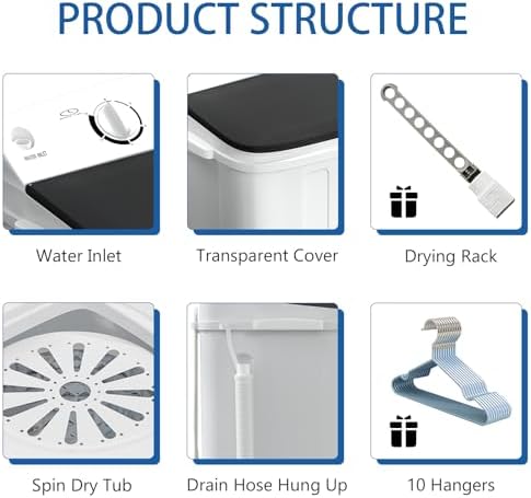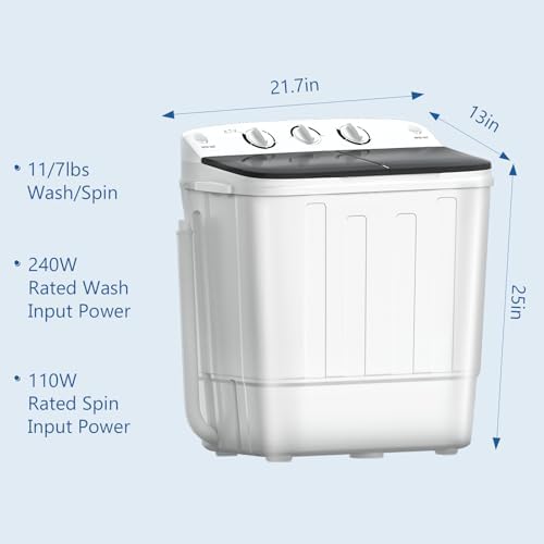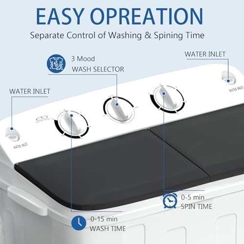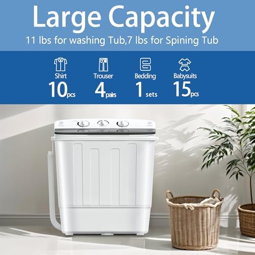 DOGHLY Double Tub 18LBS Washing Machine, Portable Washer and Spin Dryer Combo, Compact Laundry Machine for Apartments, Camping & RVs, Easy to Use, Energy & Water Efficient (18lbs)