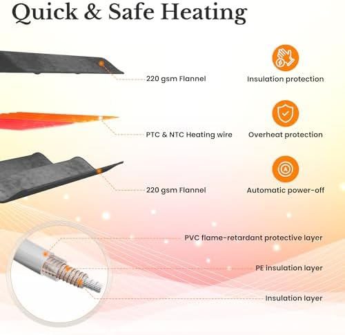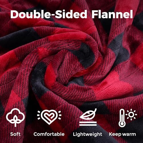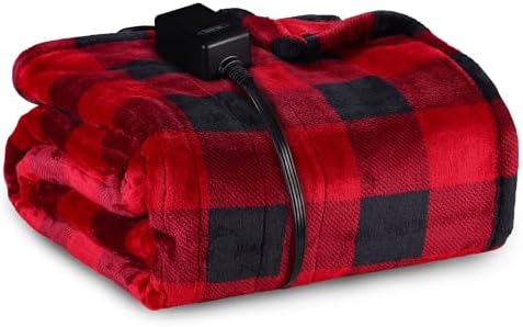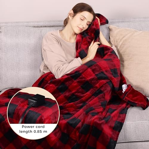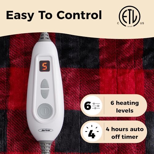 SUNVIVI Heated Throw 50" x 60", Electric Blanket Double-Layer Flannel with 4 Heating Settings, 4 Hours Auto Off, 5 Years Warranty, ETL Certified, Machine Washable, Black & Red