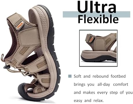 i78 Mens Athletic Hiking Sandals Closed Toe Outdoor Sport Sandals for Trail Beach Walking Waterproof Lightweight Casual