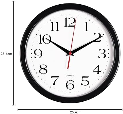 Bernhard Products Black Wall Clock Silent No Ticking 10 inches (approximately 25.4 cm) High quality quartz battery powered circular easy to read home/office/kitchen/classroom/school clock sweeping mov