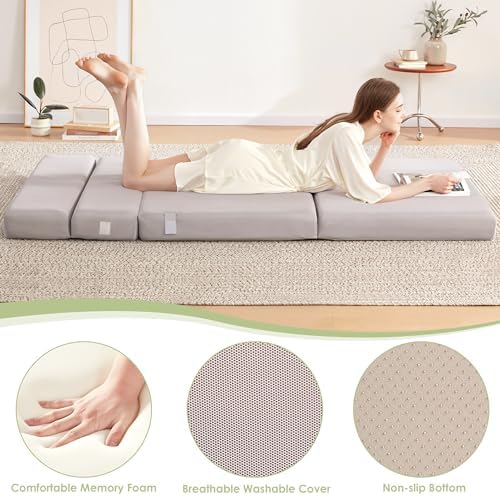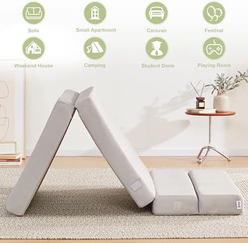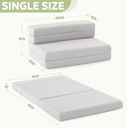 Lazyzizi Folding Sofa Bed Foldable Futon Couch Bed 4Inch Sleeper Floor Sofa for Adults, Camper, Guest, with Headrest, Breathable & Washable Cover (Single)
