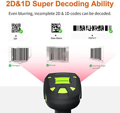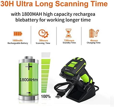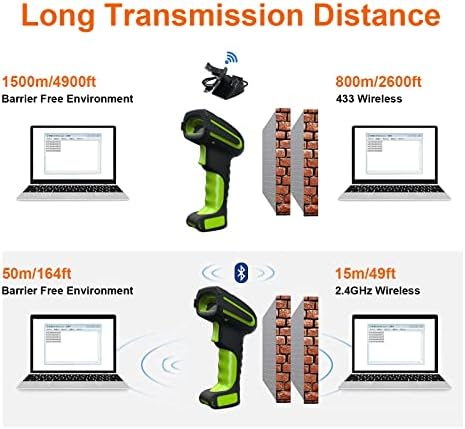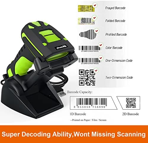 Alacrity 2D Industrial Wireless Barcode Scanner with Charging Stand, Bluetooth Drop Resistant, 1968 Feet Transmission Distance 433Mhz QR 1D Bar Code Reader