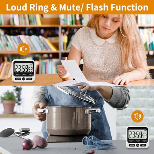 NKOVE Digital Kitchen Timer 24 Hour Clock and Alarm Function with Silent or Alarm Manual Switching Count UP or Down and Memory Function for Cooking, Baking, Meeting