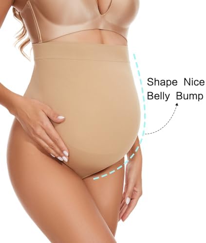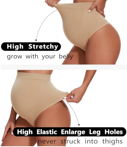 Seamless Maternity Thongs for Women, No Show Maternity Shapewear Over The Belly, Pregnancy Belly Support Panties