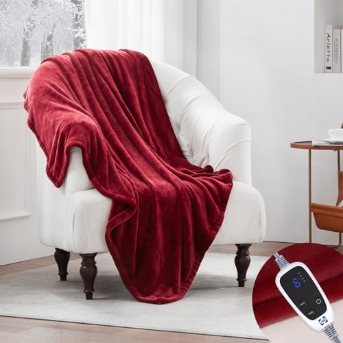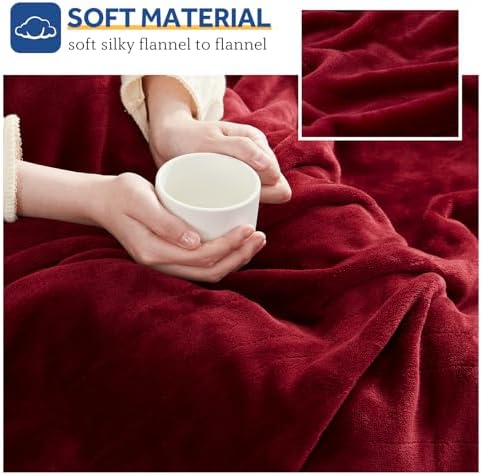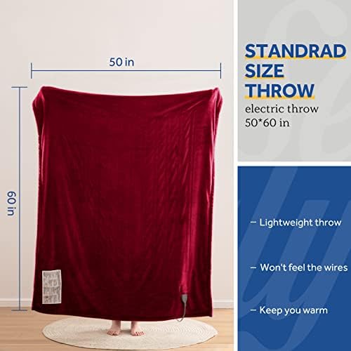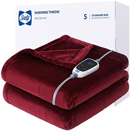 Sealy Heated Blanket Throw, Soft Flannel Electric Blanket with 6 Heat Settings & 2-10 Hour Auto Shut Off, Fast Heating with ETL Certificated Machine Washable, 50x60 Inch, Burgundy