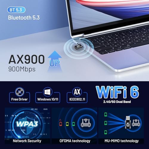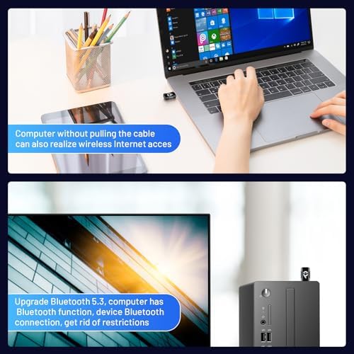 2-In-1 USB WiFi Bluetooth Adapter - 900Mbps 2.4\/5GHz Dual-Band, WiFi & Bluetooth Adapter for PC\/Laptop\/Desktop, Wireless USB Dongle, Driver Free, Win 10\/11