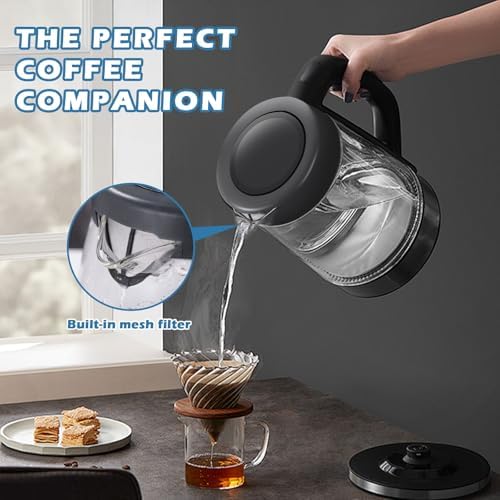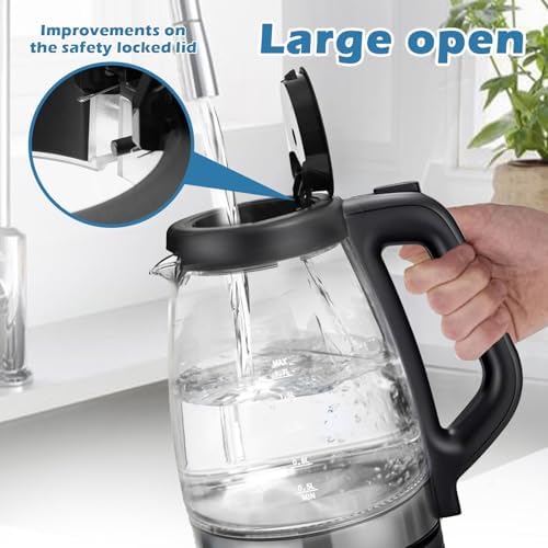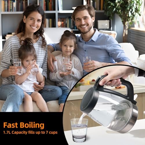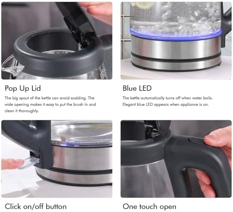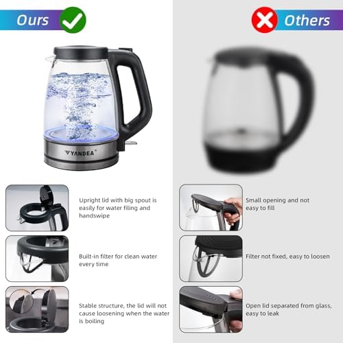 YANDEA Electric Kettle(Blue LED light), Hot Water Boiler, Auto Shut Off, Boil-Dry Protection, Upgrade lid with safety lock, Filter, BPA Free, Borosilicate Glass Electric Tea Kettle (YDK-1707(1.7L))