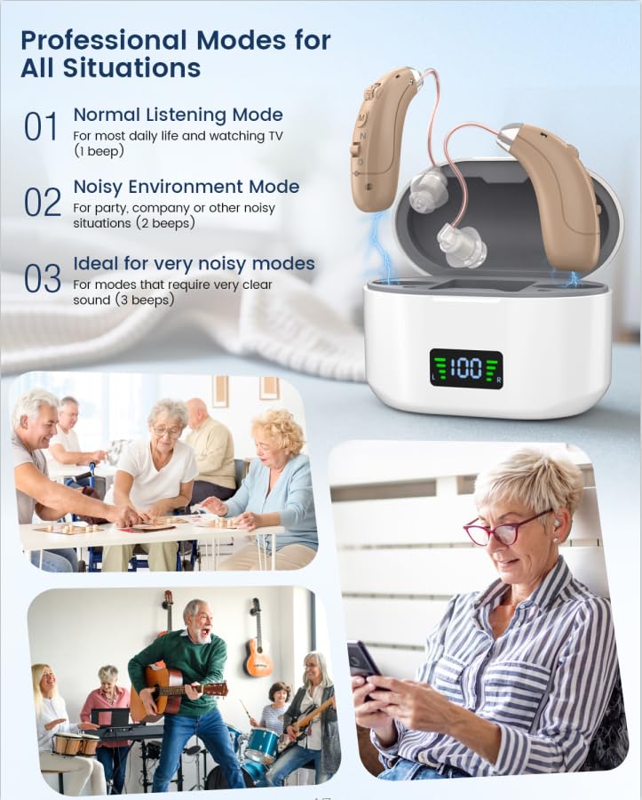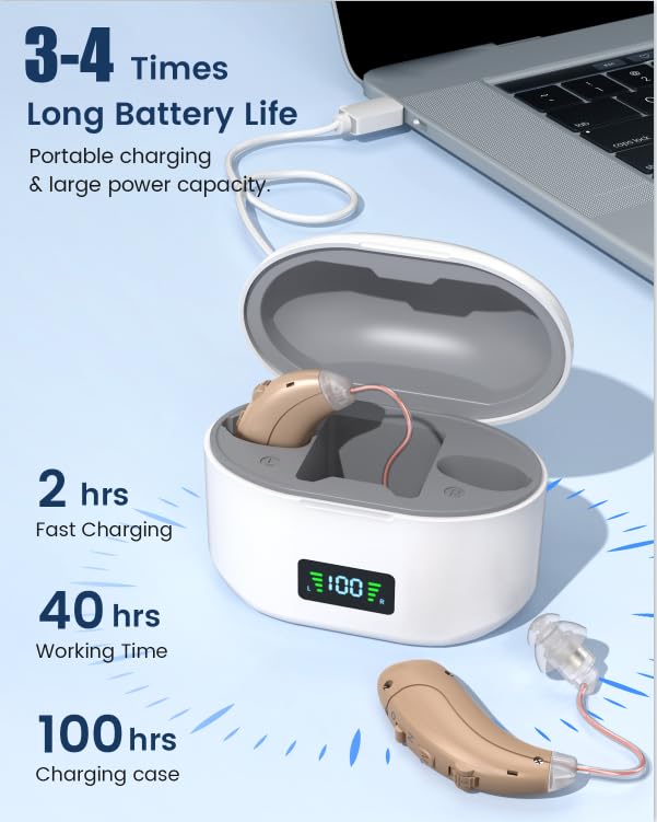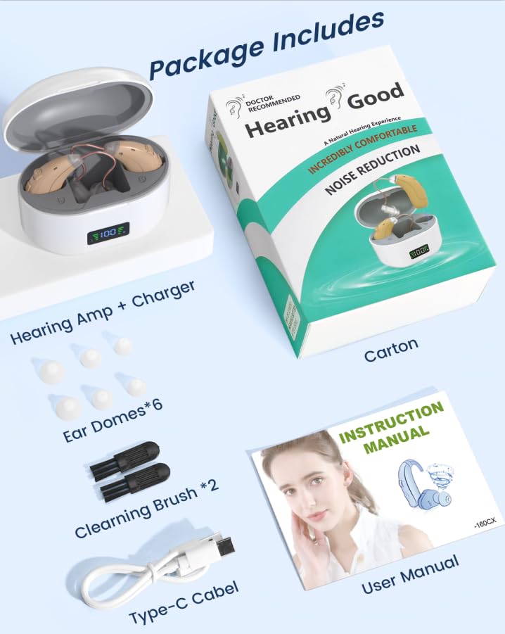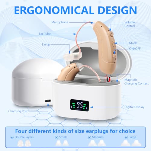 Hearing Amplifiers for Seniors with Noise Cancelling and Volume Control, Rechargeable Hearing Aids for Hearing Loss with Charging Case