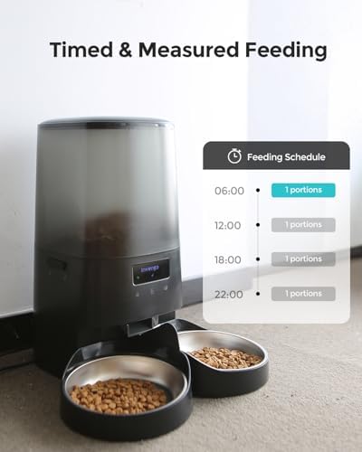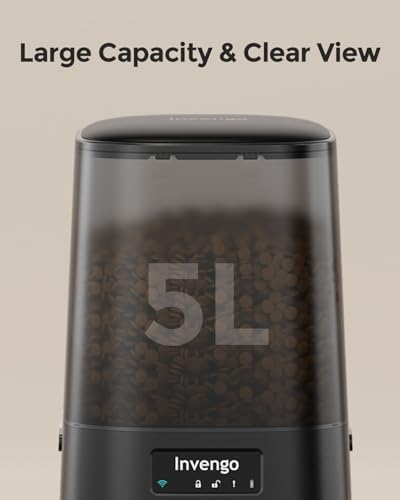 Invengo Automatic Cat Feeder - Cat Food Dispenser for 2 Cats MeowServe S20D, Auto Dog Feeder with Stainless Steel Bowls, 5L Pet Feeder with Patented Anti-Jam Port, App, Dual Lock Lid & 2.4G\/5G Wi