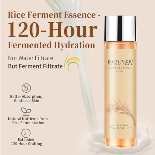 RAZUYEN Rice Toner with Aloe Leaf Water, Niacinamide and Centella Asiatica, Milky Toner for Soothing and Glowing Skin, Vegan, Alcohol and Fragrance Free