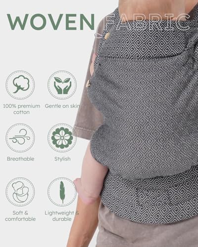 AUYEAZGO Baby Carrier for Newborn to Toddler, Woven Fabric, Jacquard Weave 100% Cotton, Compact, Adjustable and Ergonomics Infant Carrier with Lumbar Support, 7-44 pounds (Diamond Pattern - Black)