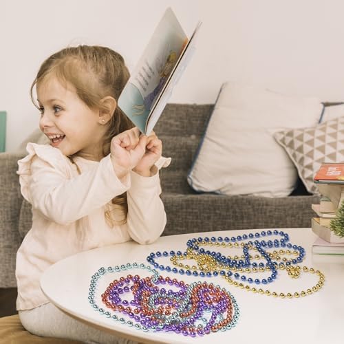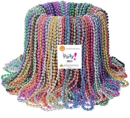 Partywonder Mardi Gras Beads Bulk Necklaces 33" Metallic Beads in 12 Assorted Colors For Festivals Parades Events Parties Favor Goody Bag Stuffers