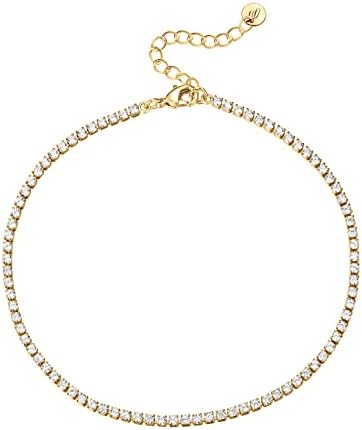 PAVOI 14K Gold Plated Tennis Anklets for Women Tennis Ankle Bracelet for Women
