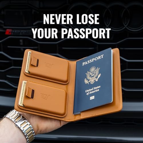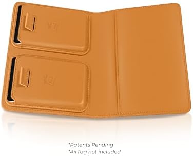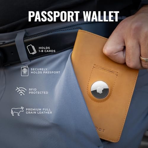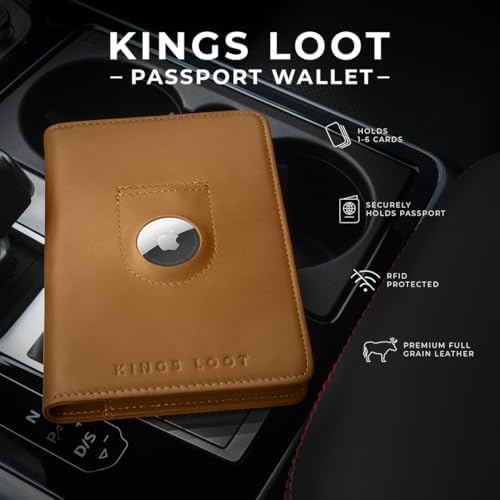 Kings Loot Passport Holder Wallet RFID Blocking Leather Travel Wallet with Built-in Airtag Holder Holds 1-6 Cards & Passport Easy Pull Tab Travel Wallets (Cognac)