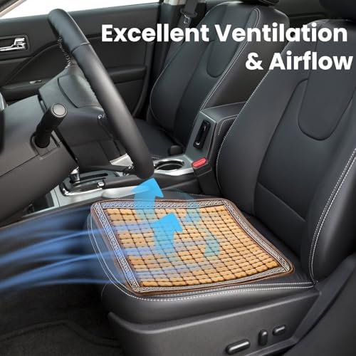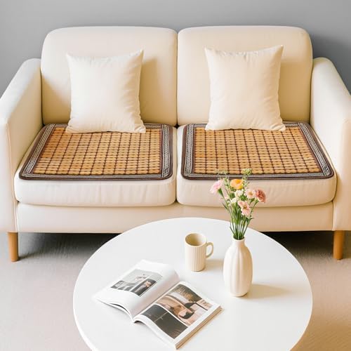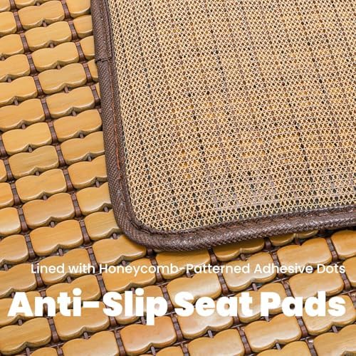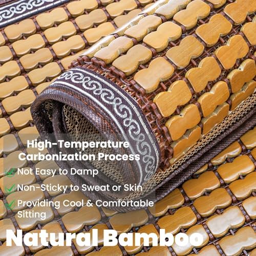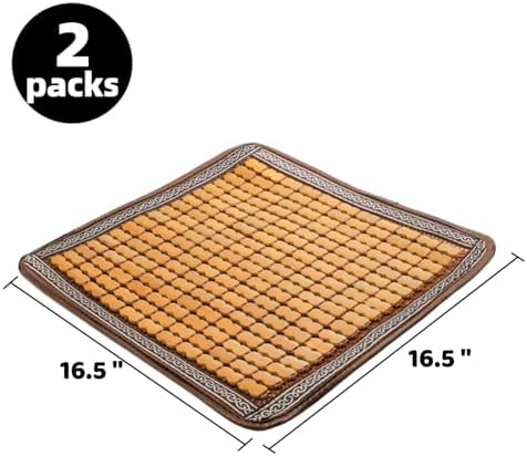 ELFULLY 2 Pcs Bamboo Chair Cushions, 16.5" x 16.5" Breathable Seat Mat for Summer, Anti-Slip Comfortable Seat Pad with Mahjong Design, Natural Carbonized Bamboo Butt Cooler for Car Truck Home