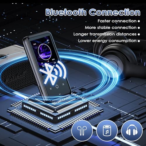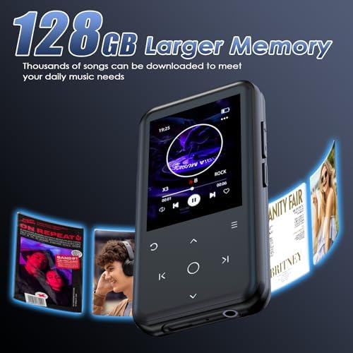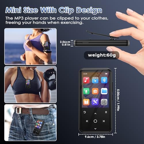 Gueray MP3 Player Bluetooth 128GB: with Clip MP3 Player with Speaker MP3 Player Suitable for Audio Books Supports FM Radio Recorder Alarm Video E-Book Pictures TF Card up to 128GB (US-Q9)