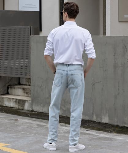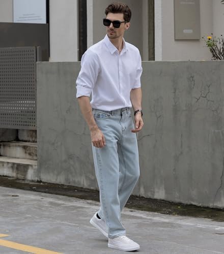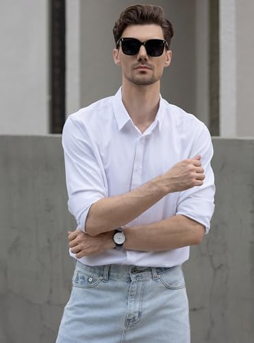Beninos Men's Formal Shirt Solid Color Long Sleeve Texture Formal Shirt Business Casual Buckle Shirt