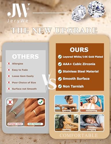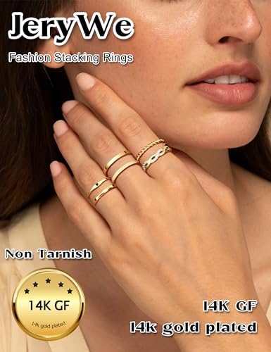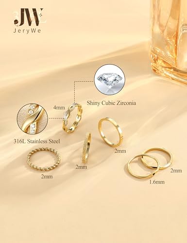 JeryWe 6 Pcs Stainless Steel Rings for Women Set Gold\/Silver Knuckle Rings Stackable Simple Carve Heart Wedding Bands Engagement Promise Eternity Bands Thumb Rings for Women
