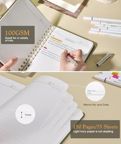 Inner spiral diary A5 deluxe spiral diary suitable for men and women, 150 pages digital pages spiral bound notebook, 100 GSM college horizontal grid notebook, work notes 5.75 inches x 8.45 inches (app
