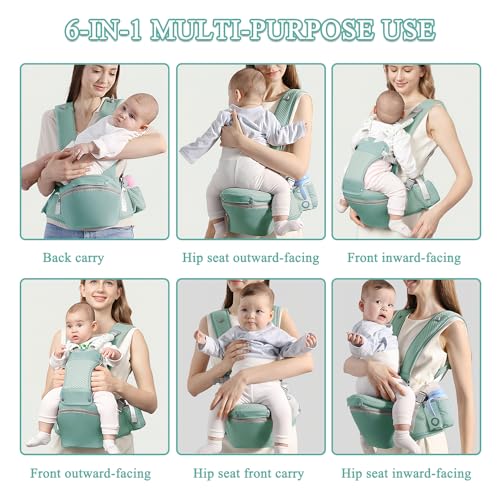 Baby Carrier with Hip Seat for Newborn to Toddler, 6-in-1 Ergonomic Infant Carrier for 0-36 Month Baby, All Positions Soft Breathable Mesh Wrap Carrier with Waist Stool, Easily Adjustable Baby Holder